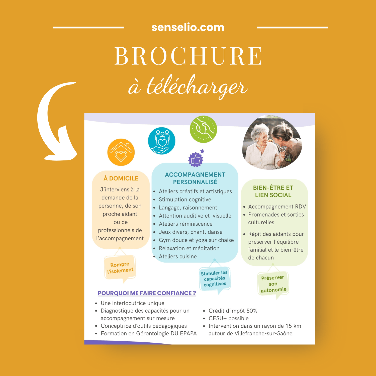 Je crée des moments de bien-être, de lien et de stimulation cognitive grâce à des activités adaptées et un suivi personnalisé pour permettre aux seniors de bien vieillir à domicile.
